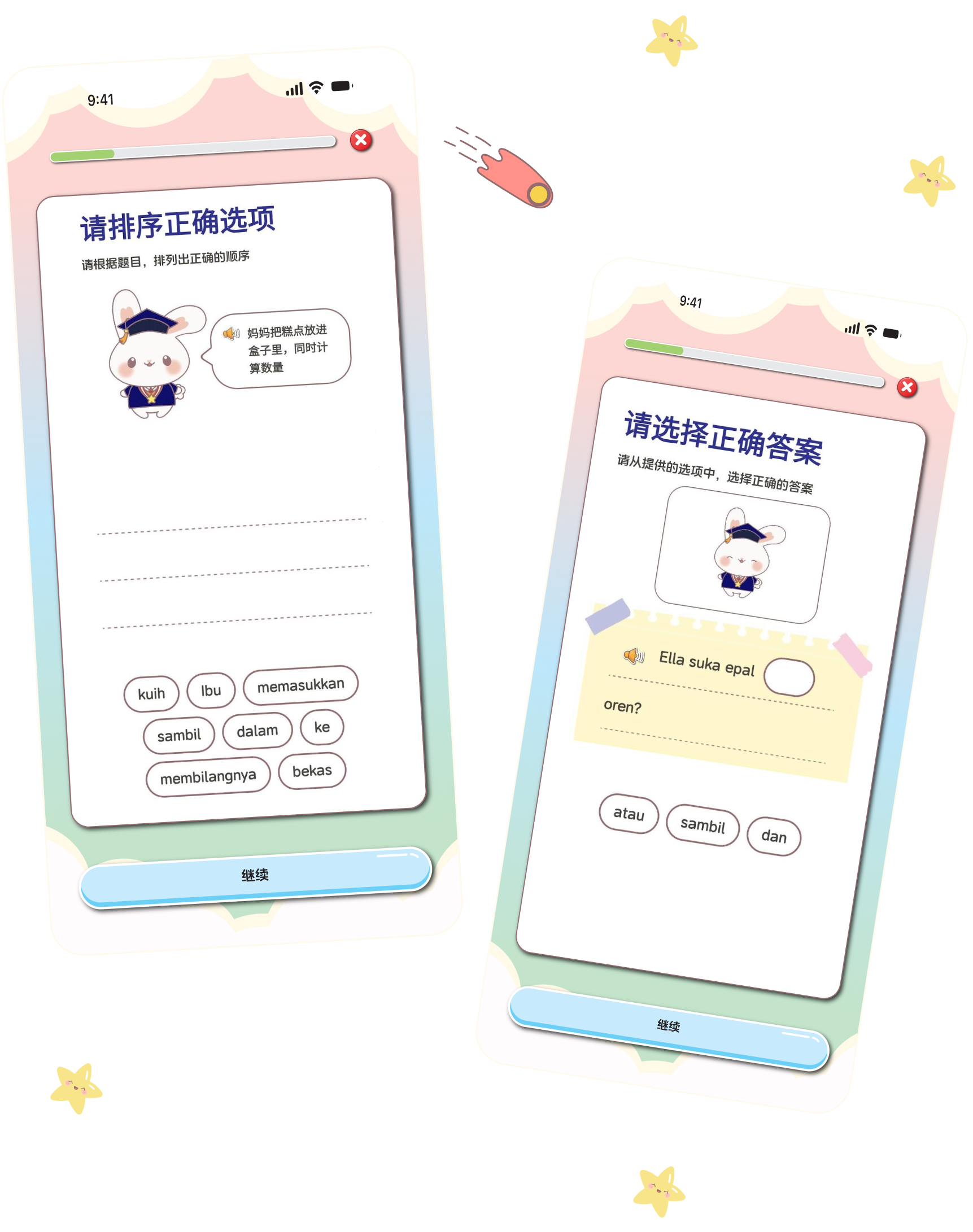 Starmigo采用游戏化的教学方式,使学习变得更加有趣和高效。您可以让孩子先阅读课本的第一个单元,测试他们对课文内容的理解。然后,尝试让他们试玩Starmigo,只需10分钟,您会发现:1. 孩子掌握了整个单元的所有词汇。2. 更熟悉马来语的句子结构。3. 经过多次练习后,孩子们甚至可以用任何一个词语造句,考试成绩飞跃提升!