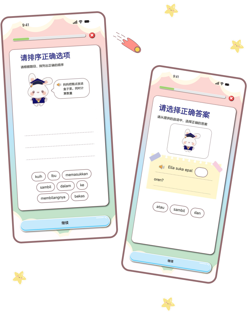 在Starmigo,我们相信最有效的学习方式是“学以致用”。我们的教学理念专注于通过实际运用词汇和造句,帮助孩子们深入理解马来文。这样,不仅能快速记住词汇,还能在日常交流中灵活运用。