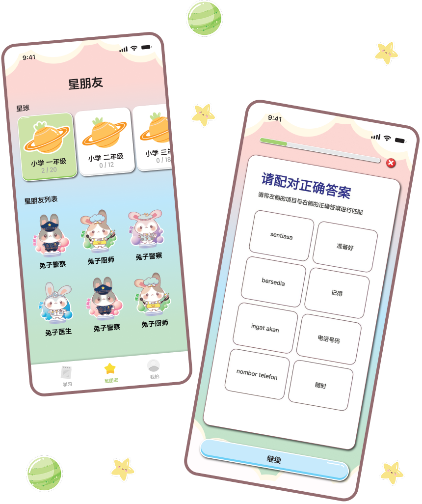 Starmigo采用游戏化的教学方式,使学习变得更加有趣和高效。您可以让孩子先阅读课本的第一个单元,测试他们对课文内容的理解。然后,尝试让他们试玩Starmigo,只需10分钟,您会发现: